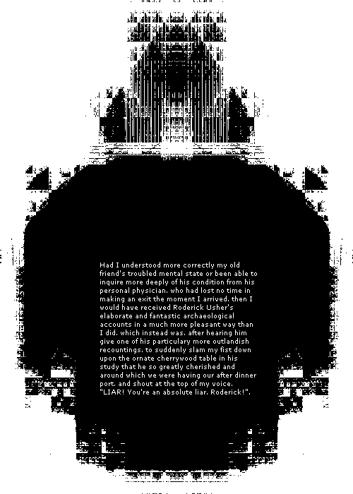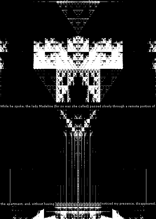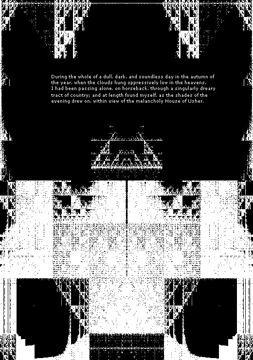 The main tool used in creating these sorts of images is a photoshop filter by Mario Klingemann called Extractor 1. It only has four sliders in it and the outcome is a literally, black and white image containing just two colors. This simple filter combined with the sierpinski triangle filter called multicrystal.8bf by Ilyich the Toad creates some very intricate images in the most primitive of all digital formats, binary.