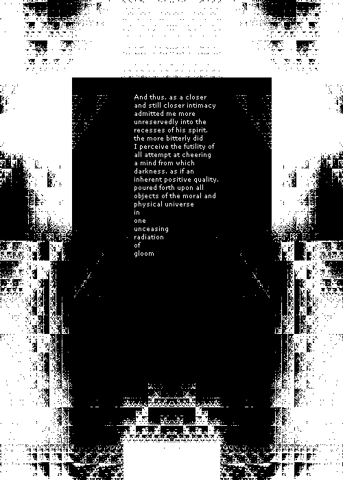 If you're at all familiar with Poe's writing, then you will have undoubtably noticed that the text on the last four images is not his. I wrote it myself after a long frustating search for a quote that would fit one of my images and after reading so much of the original writing I thought I could write the quote I was looking for.